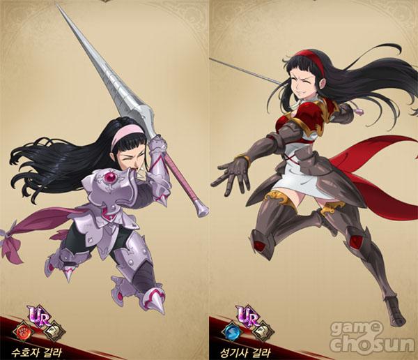 태생 SR 등급 '[레이피어] 성기사 길라'는 7챕터 섬멸전 보스 하우렉스전에서 힐러 겸 점화 셔틀로 일부 기용되나 녹선더+구브람 이중 버프나 왕녀 엘리나 코인 멀린의 안정성에는 밀린다는 평. 코스튬이 가장 예쁘다는 평가를 받는다.
