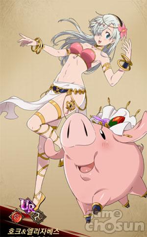 호크와 함께 하는 엘리자베스는 공격형으로, 특히 태생 SR등급 '[이동 주점] 호크&엘리자베스'는 피해를 입지 않으면 기본 능력치가 매 턴 10%씩 상승하는 개성 덕에 붉은 마신 한정으로 그 어떤 캐릭터보다도 높은 공격력을 보유할 수 있게 된다.