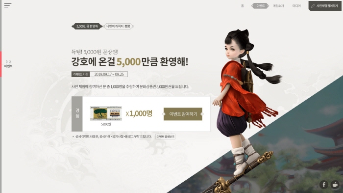 사전 체험 참여 이벤트는 검은달에 접속해 캐릭터를 생성한 후 이벤트 페이지에 네이버 계정과 게임 캐릭터명, 휴대폰 번호를 입력해 참여할 수 있다. 추첨을 통해 총 1,000명에게 문화상품권 5천 원을 지급하며, 별도의 조건 없이 캐릭터 생성 및 인증만으로 문화상품권 획득의 기회를 얻을 수 있기 때문에 꼭 참여하자.