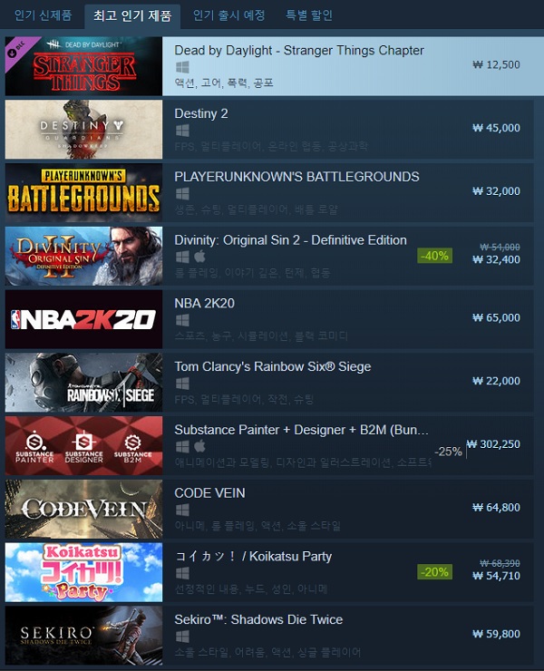 한편, 인기 미국 드라마 '기묘한 이야기'와의 콜라보 효과 덕분인지 18일 현재 신규 DLC 'Stranger Things Chapter'는 스팀 최고 인기 제품 1위에 올랐다.