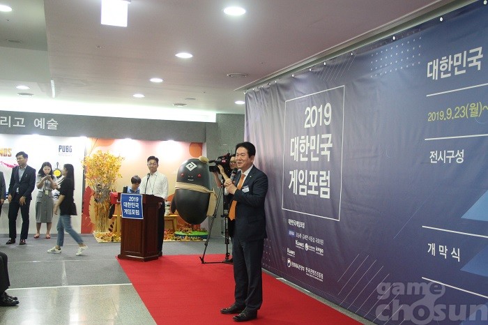 게임 산업에 대한 정부의 지원을 전하는 '박양우' 문화체육관광부 장관 = 게임조선 촬영