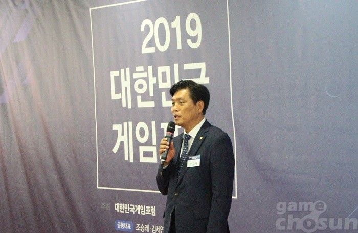 축사를 전하는 '조승래' 국회의원 = 게임조선 촬영