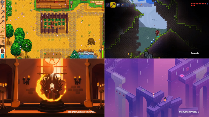 스타듀밸리와 테라리아 등 유명 게임을 전면에 내세웠다 = 구글플레이패스 공식 영상 갈무리