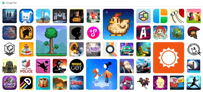 애플아케이드가 인디게임 중심의 독점 게임 및 출시 예정을 내세웠다면, 구글플레이패스는 '테라리아'나 '스타듀밸리', '레인즈', '모뉴먼트밸리2' 등 이미 발매돼 큰 인기를 얻은 게임을 제공한다. 또한 플랫폼 독점을 고집하지 않기 때문에 애플아케이드의 3배에 달하는 지원 애플리케이션을 확보할 수 있었다.
