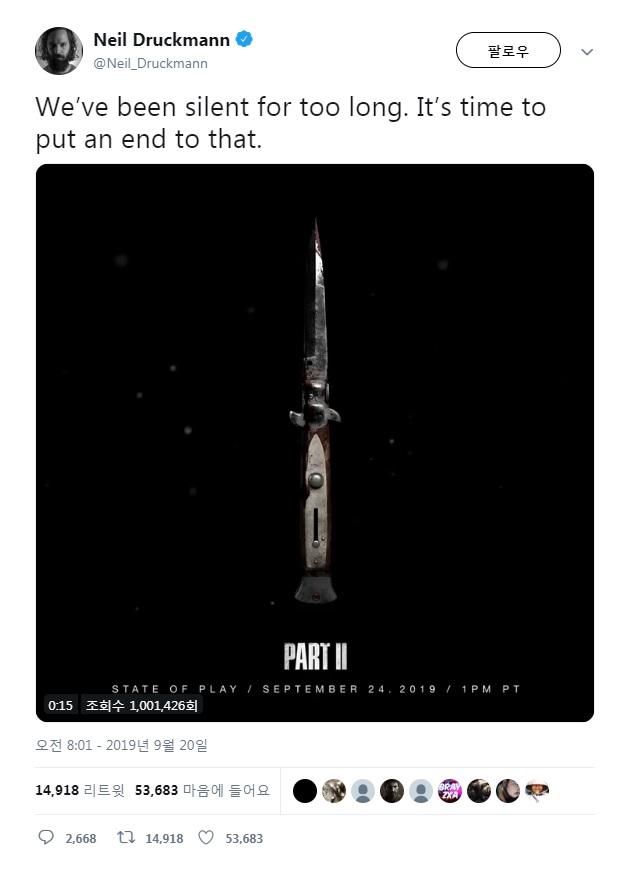 또, 너티독의 크리에이티브 디렉터 '닐 드럭만 (Neil Druckmann)'은 자신의 SNS 채널에 "We've been silent for too long. It's time to puibt an end to that. (우리는 너무 오랫동안 침묵했다. 이제 그것을 끝낼 때가 되었다.)"는 의미심장한 멘트를 남겼으며, "Tick... Tick... Click... See you tomorrow. (째깍, 째깍, 찰칵, 내일 만나자)" 면서 '스테이트 오브 플레이' 이벤트 진행일을 가리켰다.