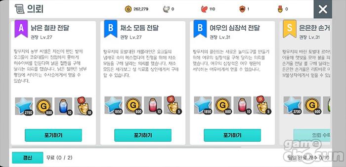 자동으로 진행되는 일반 퀘스트와는 다르게 직접 퀘스트를 읽고 행동해야 하는 의뢰 = 게임조선 촬영