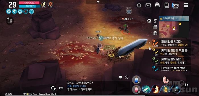 첫 던전 지역 '리트바르 마굴' = 게임조선 촬영