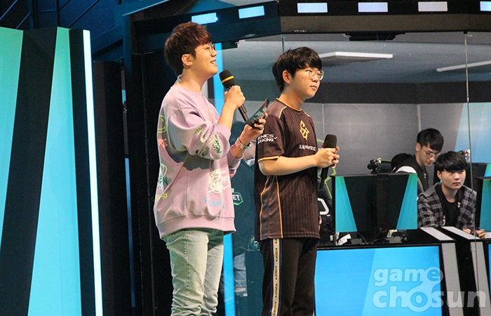 승자 인터뷰를 진행 중인 도하(김동하 선수) = 게임조선 촬영