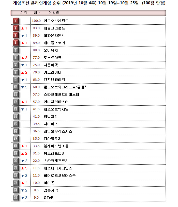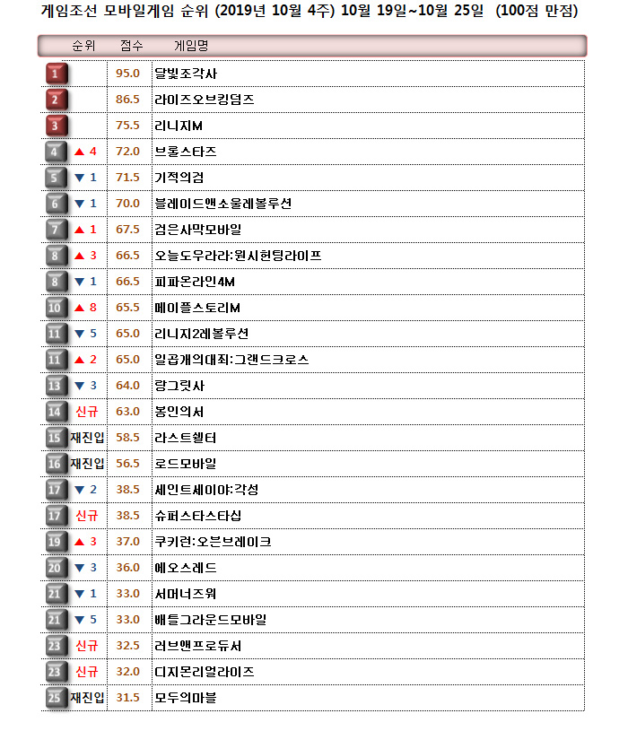 신규 콘텐츠인 '카이슈테르' 가디언 레이드와 리버스 루인이 좋은 평가를 받고 있어서인지 유의미한 순위 변동을 보여줬다.