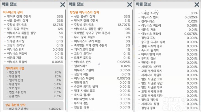 향상된 아누비스 상자는 33% 확률로 나비 30개 가격의 상급 옵션석 상자를 지급 = 게임조선 촬영