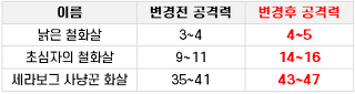 - 일부 화살의 능력치 상향.