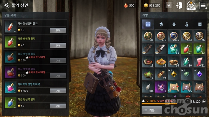 생명력/정신력 물약의 가격이 각각 기존의 20%/50% 수준으로 줄어들었다 = 게임조선 촬영