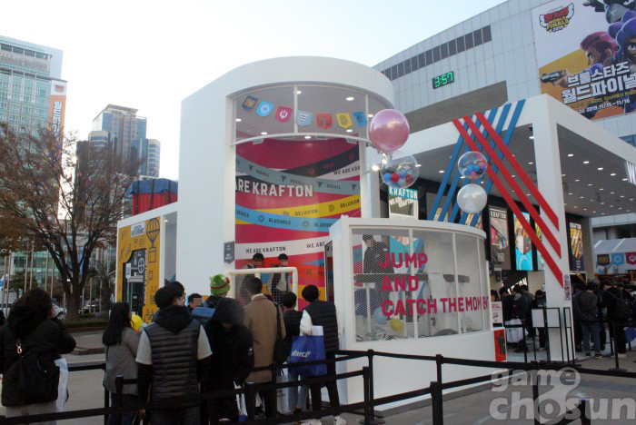 지스타2019에 참여한 크래프톤은 야외 전시장과 1전시장에 각각 종합 부스와 배틀그라운드 단독 부스를 준비했다. 종합 부스는 야외 전시장 V01에 위치하고 있으며, 트램플린과 신작 체험존, 배틀그라운드 포토존, 단체 게임존 등 다양한 참여 이벤트가 마련됐다.
