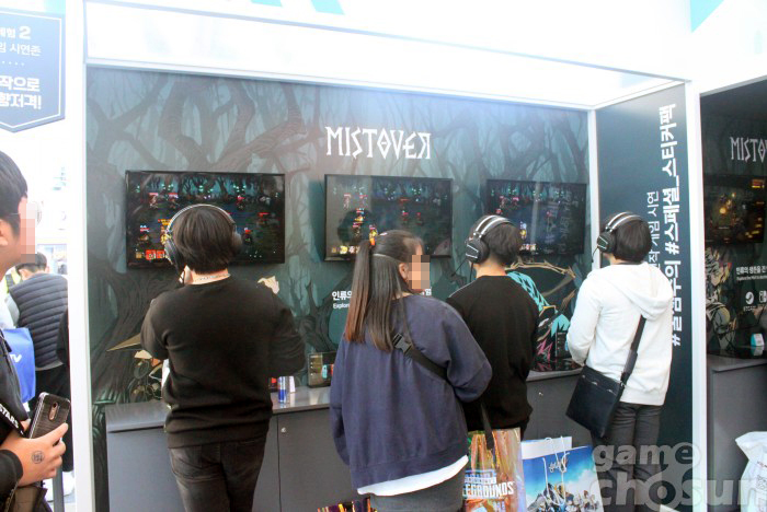 트램폴린존 옆에 있는 신작 체험존에는 크래프톤이 개발한 로그라이크RPG '미스트오버' 시연대가 마련됐다. 미스트오버는 독특한 일러스트와 긴장감 넘치는 시스템으로 이용자들에게 깊은 인상을 남겼다. 이날 행사장에는 게임 플레이 1회당 10분의 제한 시간이 있음에도 불구하고 많은 인파가 미스트오버를 체험하기 위한 긴 대기열을 만들었다. 체험을 마친 관람객들은 미스트오버 캐릭터가 그려진 스티커 팩을 받았다.