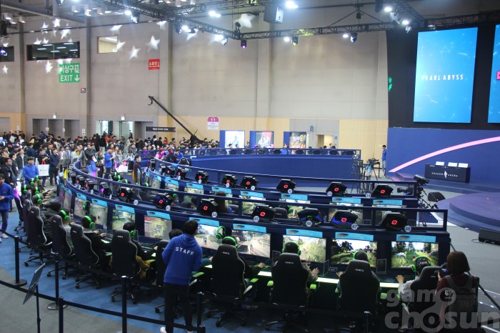 펄어비스의 메인 타이틀 '검은사막'과 '검은사막모바일'을 체험해볼 수 있는 공간도 존재했다. 검은사막의 경우, 다양한 플랫폼으로 출시됨에 따라 PS4와 Xbox one, PC 등이 마련돼 방문객 취향에 맞게 즐겨볼 수 있었다. 또, 펄어비스는 삼성전자와 협력해 함께 부스를 꾸렸는데, 덕분에 검은사막모바일은 갤럭시 최신 기종으로 최고 사양 플레이가 가능했다.