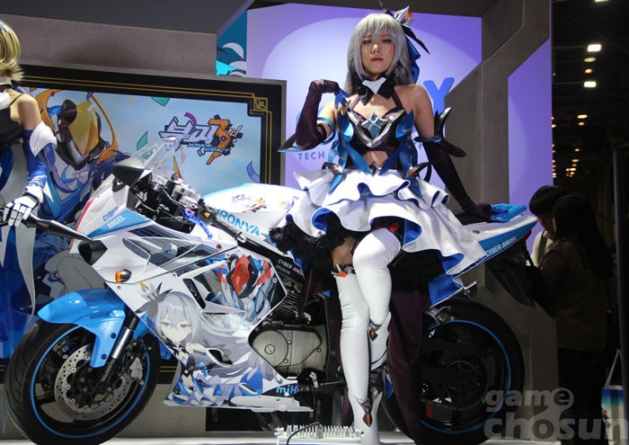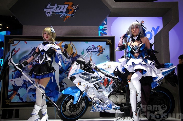 특히 수많은 방문객의 발걸음을 멈추게 한 것은 미호요 부스의 '붕괴3rd' 코스프레다. 미호요는 자사의 인기 모바일 게임 붕괴3rd의 코스프레를 준비했는데, 방금 막 게임 속에서 현실세계로 뛰쳐나온 듯 뛰어난 퀄리티의 분장을 보여줬다. 또, 실제 모터사이클을 준비해 코스프레의 완성도는 한층 업.