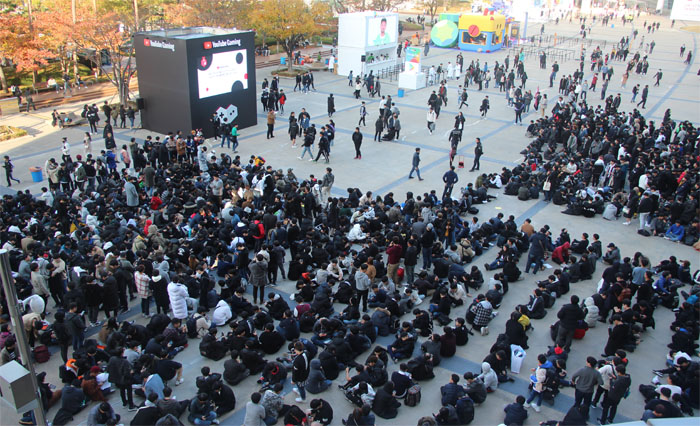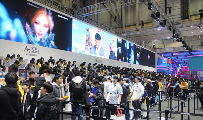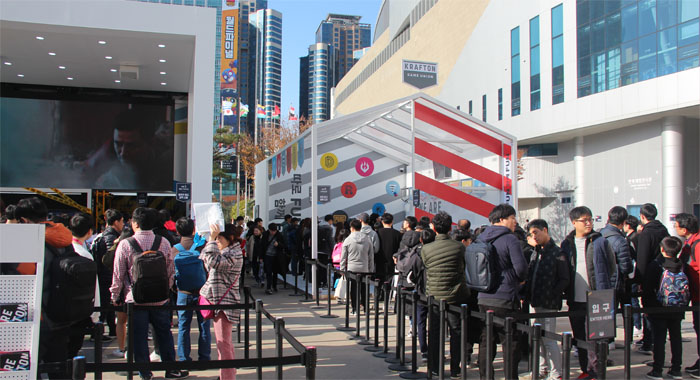 입장을 위해 대기 중인 관람객 = 게임조선 촬영