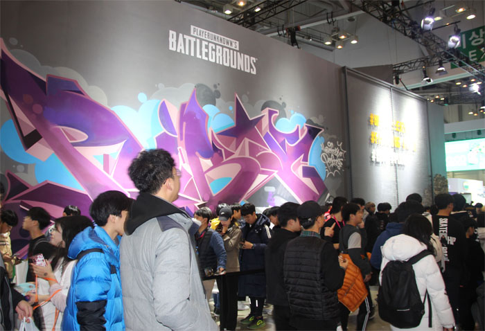 펍지 역시 순식간에 부스 대기줄이 꽉 채워졌다. = 게임조선 촬영