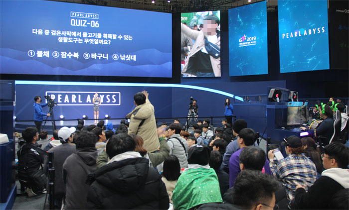 펄어비스 부스에서 퀴즈 이벤트가 한창이다. = 게임조선 촬영