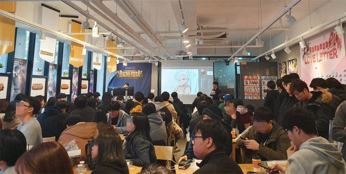 행사가 진행된 꿀템카페는 행사 시작 전부터 발 디딜틈 없을 정도로 많은 게이머들이 몰려들었다. 준비된 테이블은 물론 바닥에 앉아 행사를 관람하는 게이머들도 많았다. 특히 입구에 마련된 굿즈샵에는 항상 최애템을 구입하기 위한 게이머들로 항상 북적거렸다.