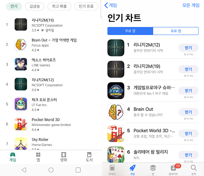 오는 27일 0시 정식 오픈하는 리니지2M이 출시 전 사전 다운로드만으로 모바일 양대마켓을 점령했다. 25일 낮 12시부터 사전다운로드를 시작한 리니지2M은 구글 플레이와 애플 앱스토어 인기 순위 1위에 각각 올랐다. 특히, 리니지2M은 19세 버전과 12세 버전이 따로 출시됐음에도 불구하고 두 버전 모두 상위권을 차지하는 모습을 보이기도 했다.