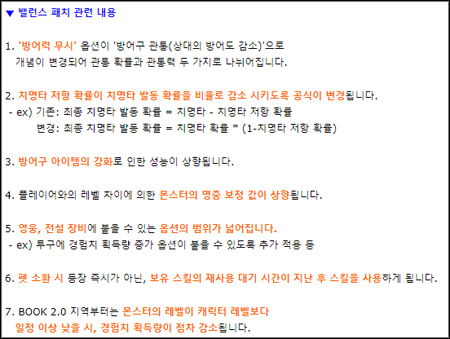 이외에도 치명타 저항 확률 계산식 변경 및 방어구 강화에 따른 효율이 상승, 몬스터 명중 보정 변경, 펫 스킬 사용 방식 변경, 신규 지역의 몬스터 경험치 획득량 변경 등 밸런스와 관련된 업데이트가 진행된다.