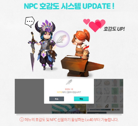 신규 던전 공개와 함께 1차 미리 보기에 등장했던 신규 유니크 장비 아이템과 조각상, 요일던전 추가 난이도, 호감도 시스템, 제작 최대 개수 상향 등이 공개됐다.