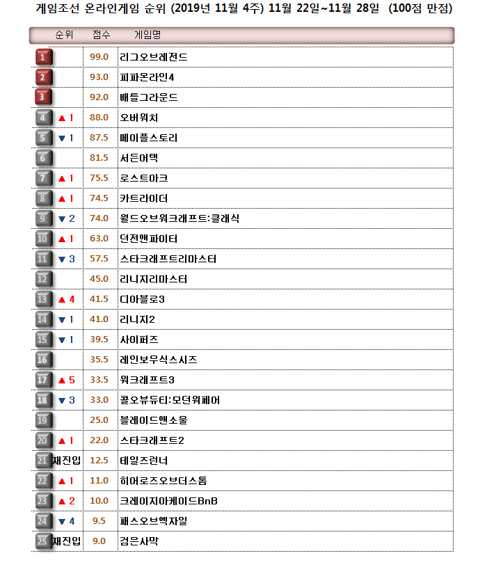 그 중에서도 디아블로3와 워크래프트3(리포지드)는 각각 4계단, 5계단씩 순위가 올라가 상승세가 조금 더 눈에 띄고 있는 모습이다.