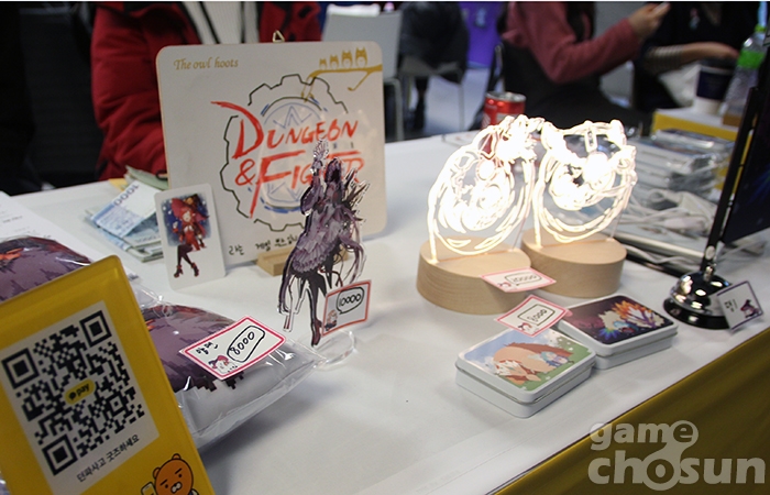 던전앤파이터의 다양한 직업군을 엽서로 판매하고 있다 = 게임조선 촬영
