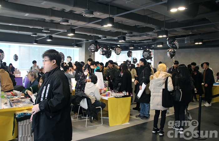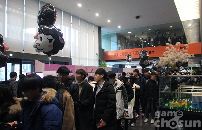 넥슨 사옥 1층에서 게임부스 퀘스트 진행을 위해 줄지어 선 관객들 = 게임조선 촬영