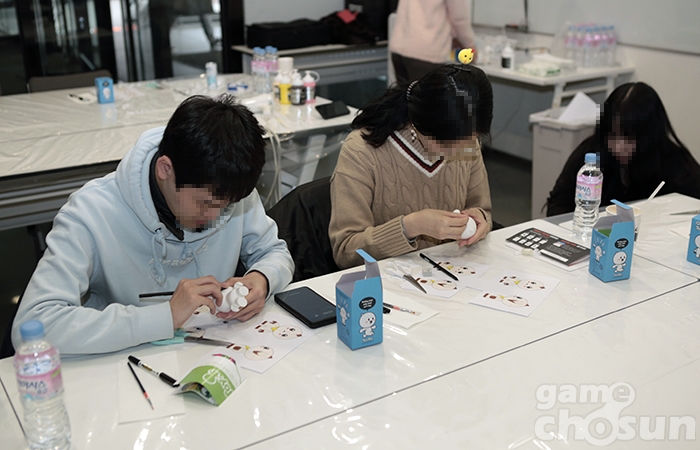 아트토이 제작에 열중하고 있는 원데이클래스 수강생들 = 게임조선 촬영