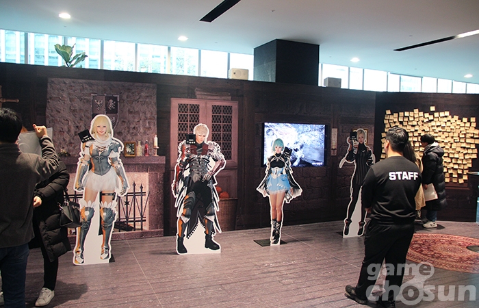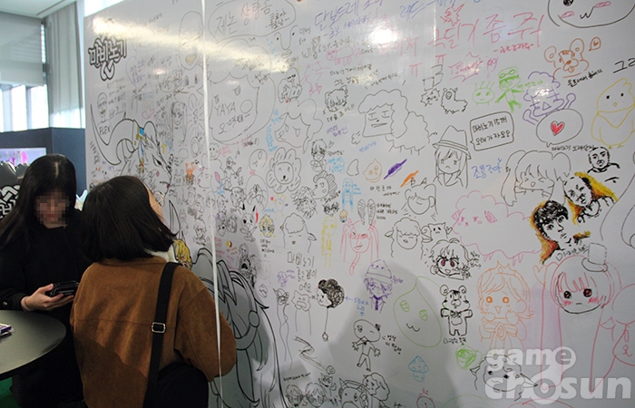 클로저스 부스에는 설정화와 개별 일러스트를 한꺼번에 보여주는 병풍이 설치됐다 = 게임조선 촬영