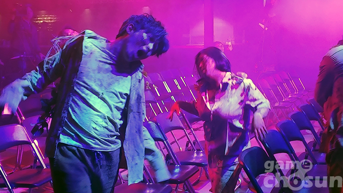 입장과 동시에 좀비쇼를 볼 수 있었다. = 게임조선 촬영