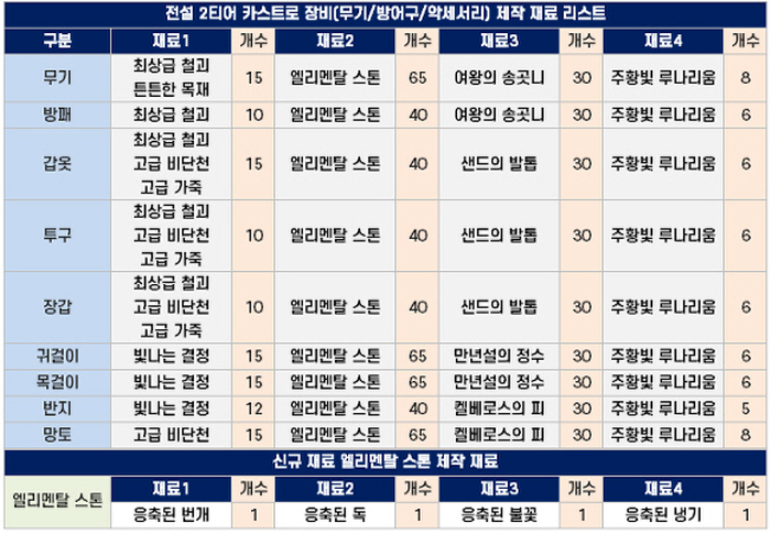 엘리멘탈 스톤을 사용하는 신규 제작 전설 '카스트로' 장비 재료 = 달빛조각사 공식 커뮤니티