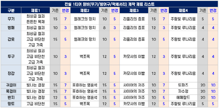 요구 재료가 반 이상 줄어들어 전설 장비 제작 난이도가 대폭 내려갔다 = 달빛조각사 공식 커뮤니티