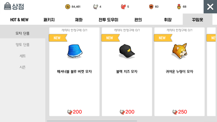 업데이트 미리보기로 공개된 꾸밈옷 세트외에도 상시 구매 가능한 모자 및 망토 꾸밈옷이 상점에 추가됐다. 해당 아이템은 모두 물리 방어와 마법 방어가 1로 책정됐으며, 붉은 나비로도 살 수 있다. 단, 꾸밈옷 세트 중 '허니 비 세트'와 '옐로우 라이더 세트', 화이트 크리스마스 코스튬 패키지'는 달빛 나비로만 구매할 수 있다.