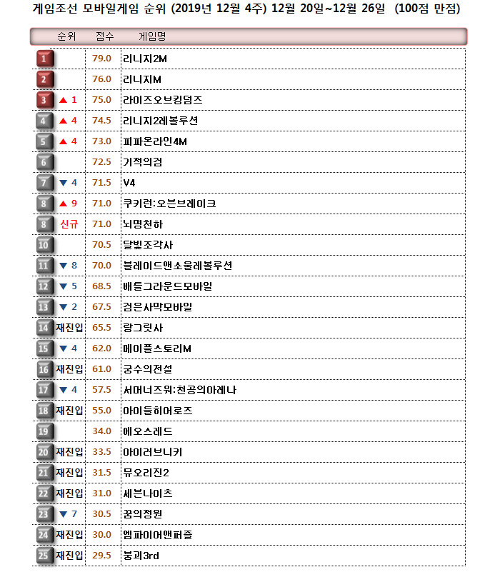 리니지2레볼루션이 전 직업 밸런스 개편과 함께 각성 스킬 업데이트를 실시하여 유의미한 순위 상승을 보여줬다. 지금까지 항상 종족 단위로 잘라서 밸런스 개편을 진행하다 보니 이에 대한 유저 피드백이 어렵다는 의견이 많았는데 이를 수용한 결과로 보인다.