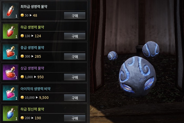 추가로 '노란고래 주화'도 보상으로 주어지기 때문에 노란고래 주화를 모아서 '상급 축복의 물약' 혹은 '마력이 깃든 고서' 등으로 교환하면 된다.