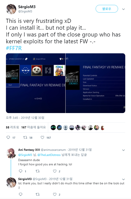 데모 버전이 처음으로 공개됐을 땐 일반 플레이스테이션4에서 구동되지 않았다 = SérgioM3 트위터