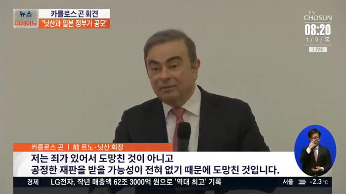 곤 회장은 2018년 11월 일본 내 프랑스 상공회의소 설립 100주년 행사에 참석하기 위해 일본에 왔다가 체포된 후 거액의 보석금으로 내고 자택 연금 형태로 전환, 이후 악기 케이스에 숨어 자택을 빠져나와 감시가 허술한 오사카 공항을 통해 레바논으로 탈출한 바 있다.