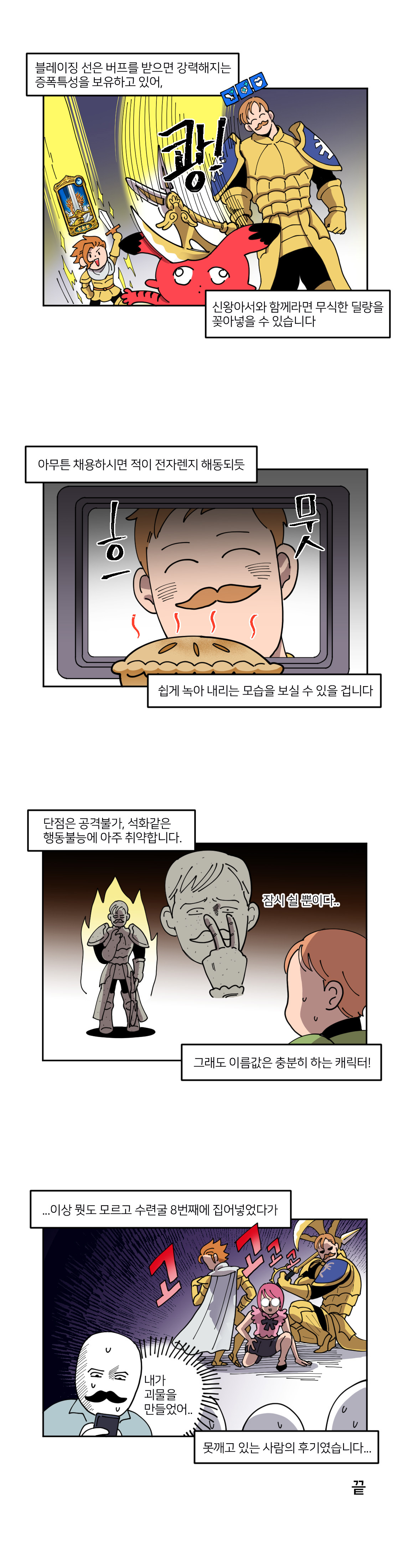 따라서 어떤 캐릭터로 어떤 조합을 하느냐가 매우 중요한데, 그 중에서도 몇몇 캐릭터는 덱 내에서 매우 중요한 역할을 한다. 이에 웹툰 작가 '국도'가 추천하는 영웅 캐릭터를 살펴봤다. 국도는 웹툰을 통해서 영웅 캐릭터를 추천하고, 해당 영웅을 어떻게 활용해야할지 재치있게 표현했다.