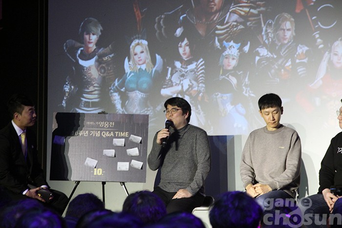 마비노기영웅전 10주년 기념행사 프로그램에는 신규 콘텐츠 및 상품 공개 외에도 이용자들의 궁금증을 해소하는 질의응답 시간이 마련됐다. 질의응답에는 마비노기영웅전 주요 개발자 조창희 리더와 이재도 리더, 한용섭 리더, 박일호 리더가 참석해 이용자들의 궁금증을 풀어줬다.