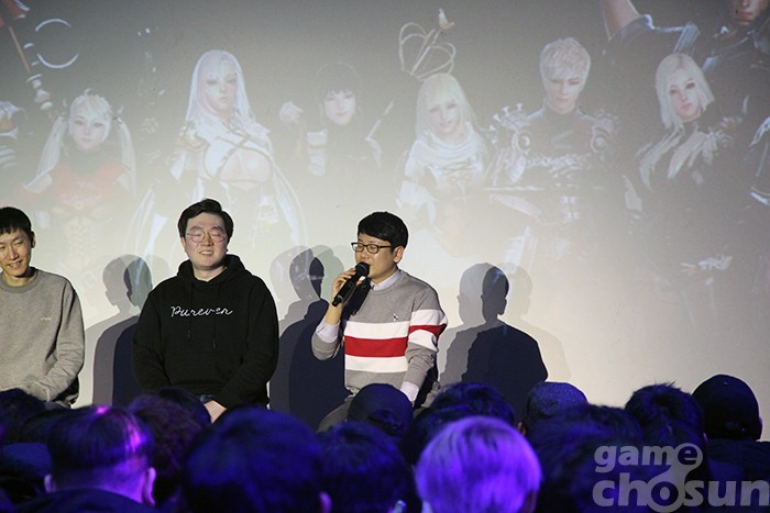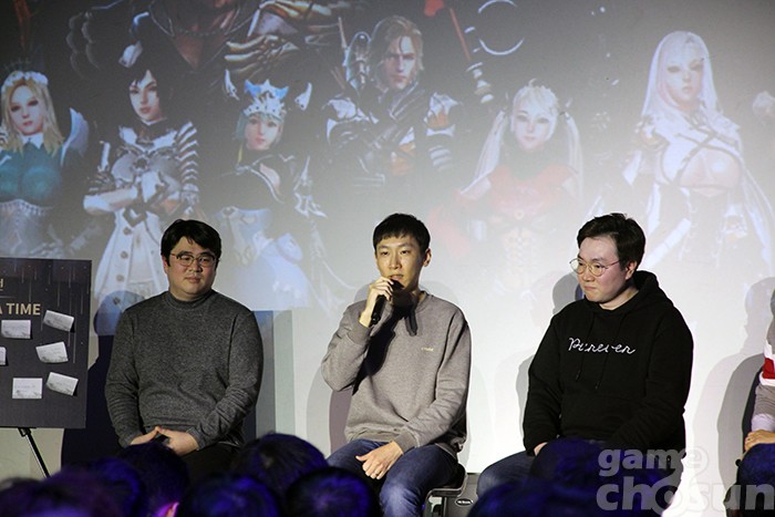 질의응답 중인 개발자 4인 = 게임조선 촬영