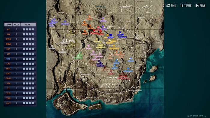 3세트에서 벌어진 격전을 의식한 탓인지 4세트인 에란겔에서는 각 스쿼드는 비교적 맵을 넓게 가져간다.