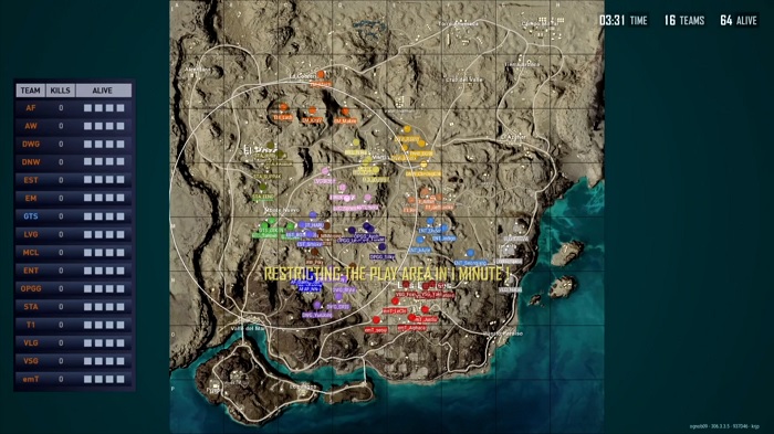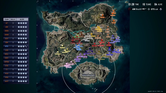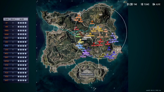 대부분의 팀이 북쪽에 강하했지만 밀리터리 베이스가 안전지대로 선정되면서 모든 스쿼드가 초비상에 걸렸다.