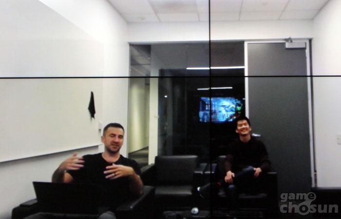 화상 통화로 인터뷰를 진행 중인 제프 주의 모습 = 게임조선 촬영