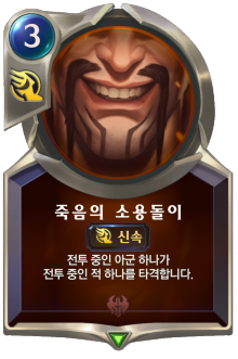 예를 들어 현 시점 레전드오브룬테라의 챔피언 카드 드레이븐은 도끼를 던지고 받는 원작의 느낌이 나게끔 회전 도끼를 포함한 모든 주문을 사용하거나 타격 시 회전 도끼를 손으로 회수할 수 있게끔 디자인됐는데요. 로테이션을 거치면 본래 궁극기인 죽음의 소용돌이와 연계되는 방향으로 다른 특성을 표현하도록 바뀔 수 있습니다. 원작으로 치면 리워크에 해당하겠네요.