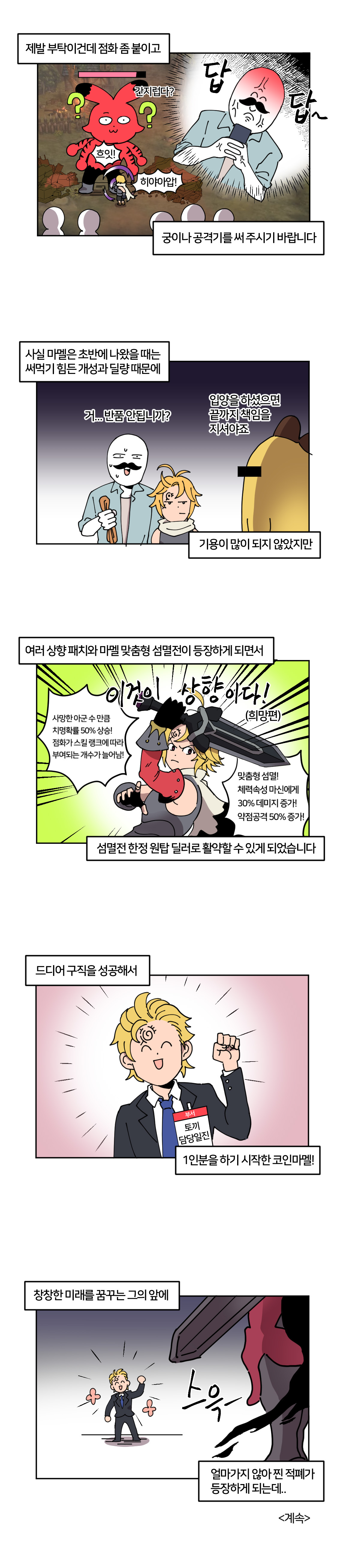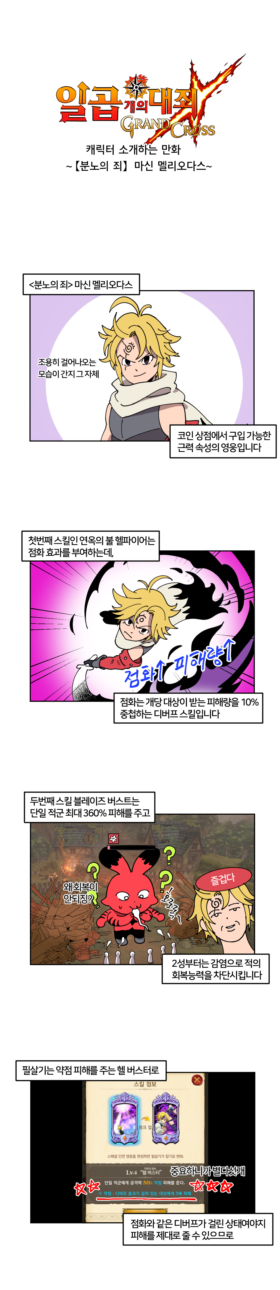 이번화에서 국도 작가가 소개한 캐릭터는 '[분노의 죄] 마신 멜리오다스'다. [분노의 죄] 마신 멜리오다스는 '구마멜'이라 불리우는데 여러모로 비운의 캐릭터로 여겨지고 있다. 특히 까다로운 개성 조건과 다른 캐릭터에 비해 효율이 낮은 공격 수준으로 기용이 많지 않았다. 하지만 상향 패치와 맞춤형 섬멸전의 등장으로 확고한 자리를 마련한 구마멜의 이야기를 살펴보자.