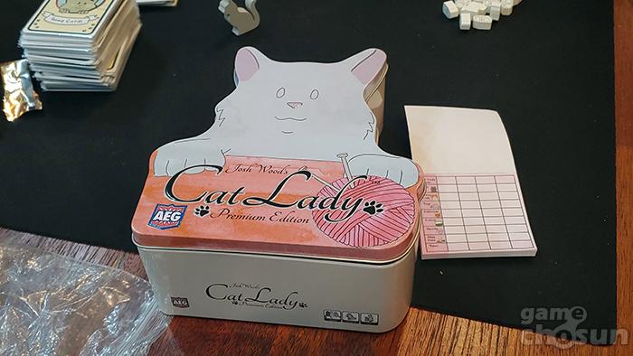 캣 레이디는 AEG의 베스트셀러 게임으로, 프리미엄 에디션으로 한정 제작되며, 이후 일반판은 미들박스 라인업으로 공개된다. 프리미엄 에디션에는 틴케이스와 커스텀 미플, 블랭크 카드 등의 구성이 포함될 예정이다. 이 게임은 스시고파티와 비슷한 느낌의 빠르고 간단한 게임이다.