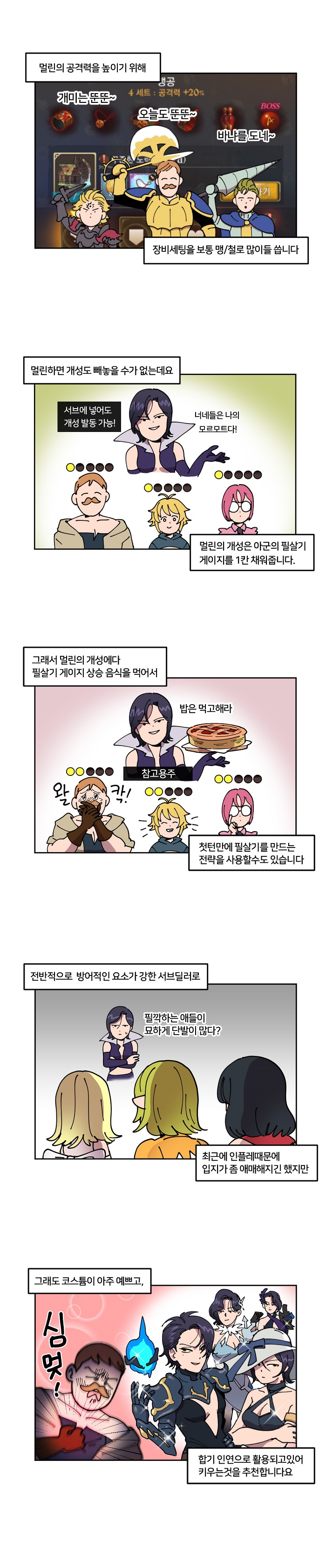 따라서 어떤 캐릭터로 어떤 조합을 하느냐가 매우 중요한데, 그 중에서도 몇몇 캐릭터는 덱 내에서 매우 중요한 역할을 한다. 이에 웹툰 작가 '국도'가 추천하는 영웅 캐릭터를 살펴봤다. 국도는 웹툰을 통해서 영웅 캐릭터를 추천하고, 해당 영웅을 어떻게 활용해야할지 재치있게 표현했다.